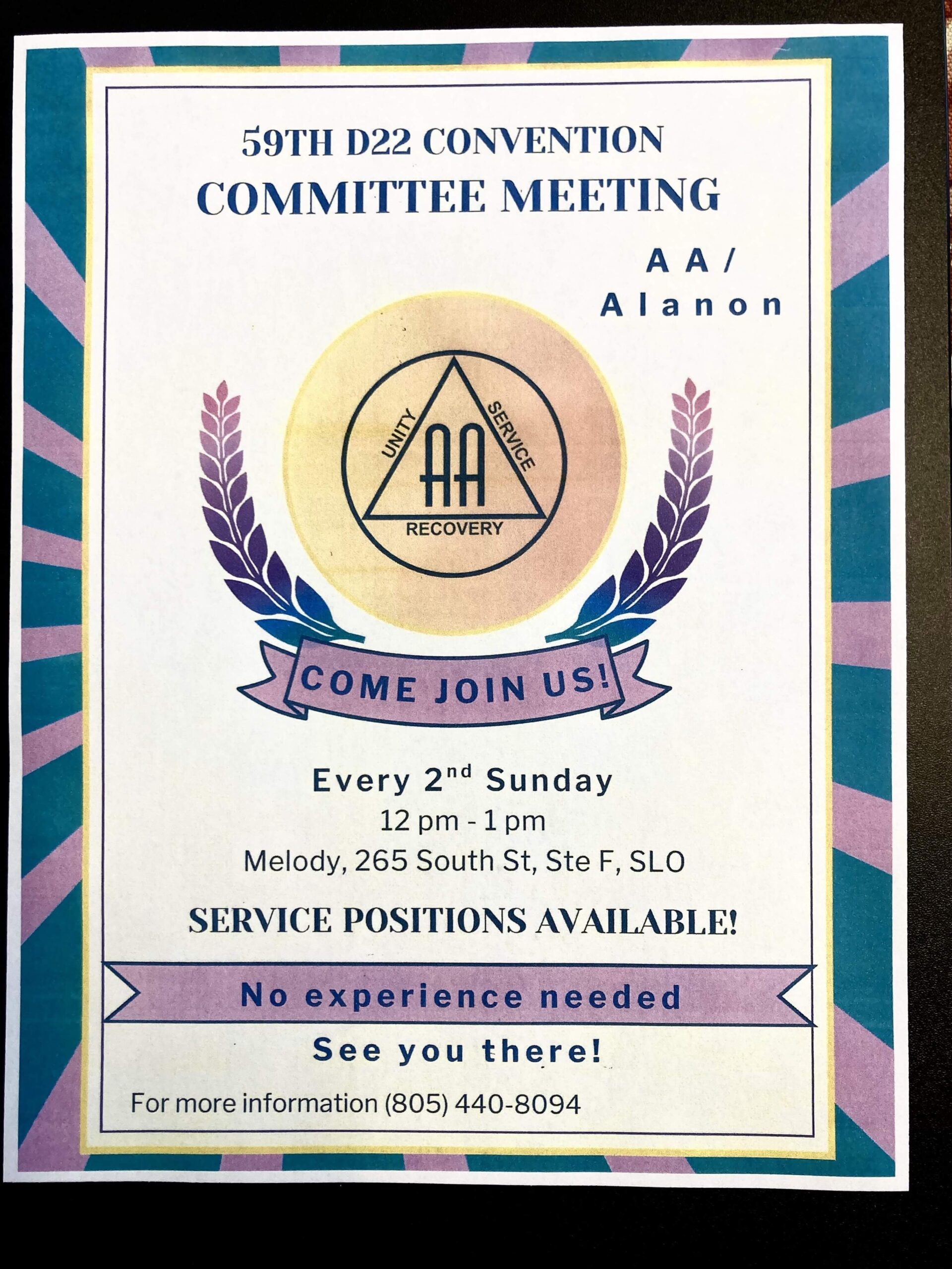 District 22 Area 93 Committee Events Calendar