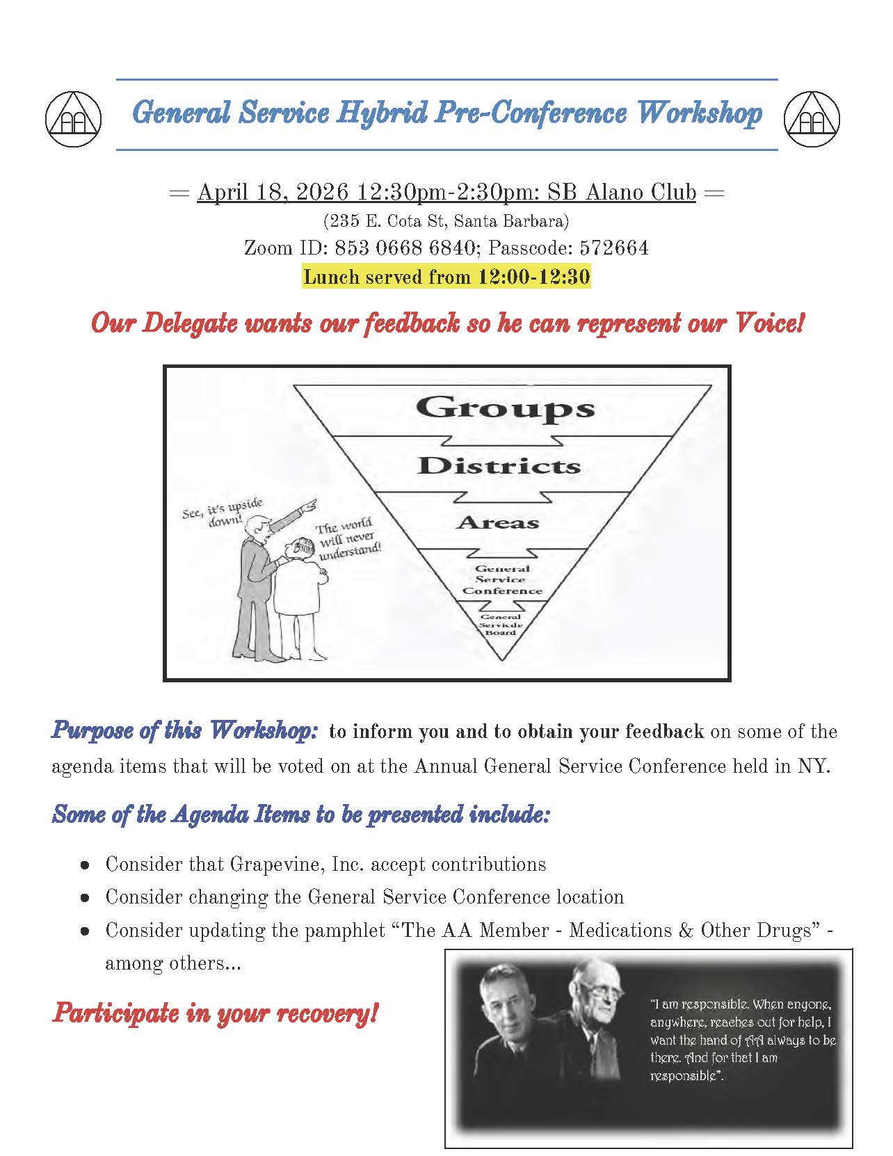 This calendar contains AA related events for District 22 Area 93 Committee. All events are reviewed by our volunteers and are accurate to the best of our knowledge. If there are any corrections needed please contact us..